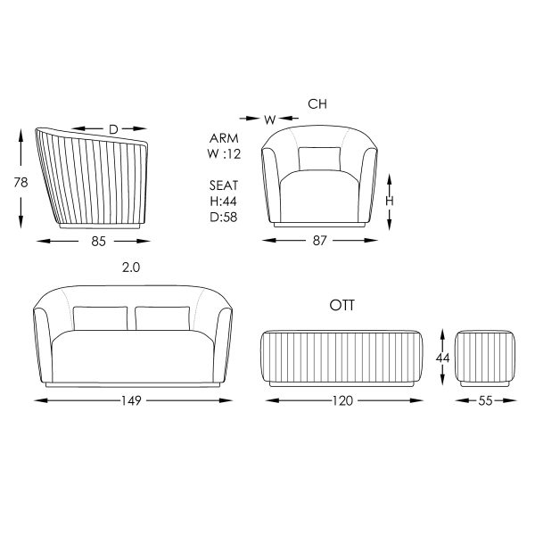 | Seat and Back | Fully Upholstered as Applicable to the Individual Design |