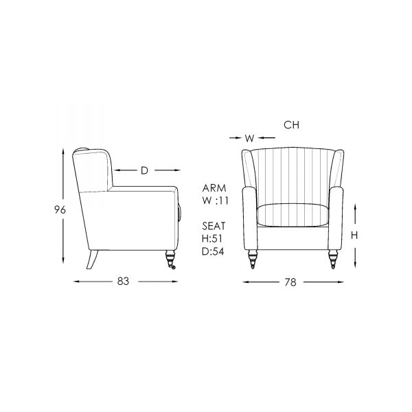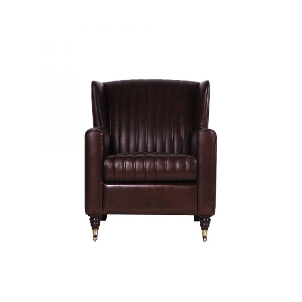 Take a step back in time with the retro styling of the Bugatti chair. This striking chair features a unique ribbed panel design on the back and seat cushion; which is reminiscent of classic, 1950s cars. A squared-off wing back design, which flows down through to the slim, square arms, gives this chair a strong, masculine feel. This is seamlessly balanced with elegant turned-timber legs, and finished off with dainty metal castors. The Bugatti offers a harmonious balance between masculine and feminine styling.