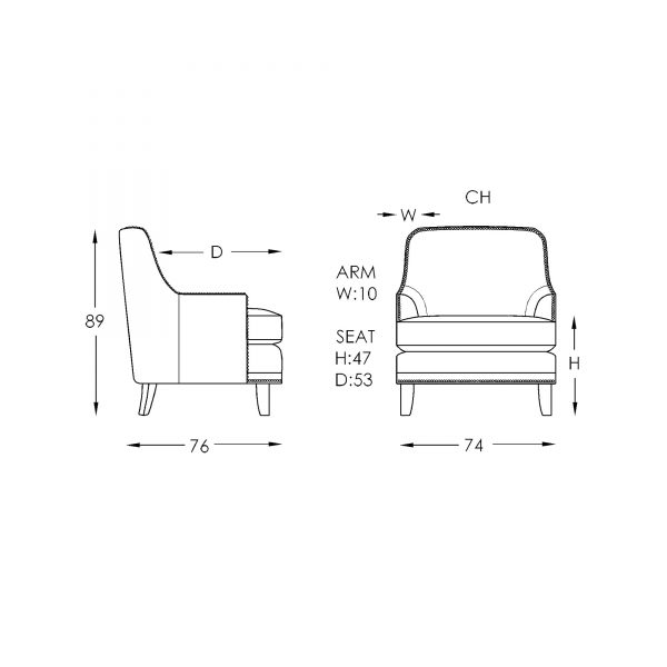 The Carter is a beautifully tailored accent chair with lots of charm and personality. The Carter’s tapered shape, thick cushioning and supportive back will fit snuggly around you leaving you feeling cosy and comfortable. Feature studding accentuates the pleasing form and highlights the Carter’s beautiful proportions. The versatility of the Carter chair is endless. The Carter is the perfect size and shape to fit comfortably into many different room settings and is certain to be a treasured acquisition.
