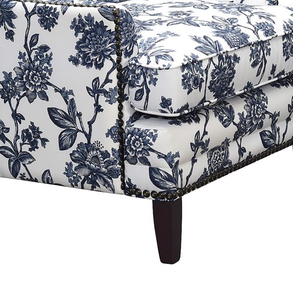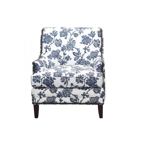 The Carter offers endless possibilities in fabric and leather, studs and no stud options. This chair however, truely comes to life when upholstered in delightfully playful patterned fabrics. The graphic pattern featured here expresses in a stunning full bloom of stylised flowers on an indigo coloured cotton/linen base cloth, with other uplifting colours available that will leave you feeling warm and joyful all year round.