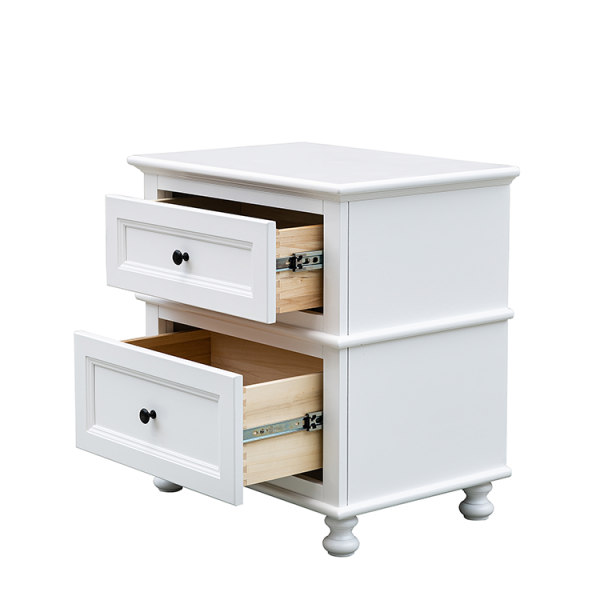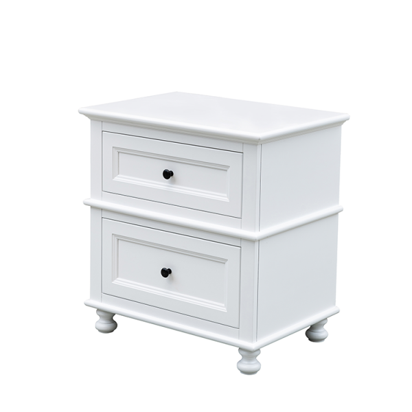 The Cassis bedside table is part of a charming, classically inspired bedroom range. Create a tasteful French provincial style bedroom with ease. This beautiful bedside storage features an elegantly curved and shapely form with ornate moulding details. The crisp white paint finish enhances the captivating silhouette with a style that will lend itself not only to classic style homes but also contemporary homes wanting to incorporate timeless classic styled furniture pieces. The generous sized two drawers will provide ample handy storage to keep your room organised. This bedside table is perfectly matched to the Cassis bed from this range. Alternatively, the neutral colour is perfectly suited for coordinating into many bedroom settings to create a personalised ensemble.