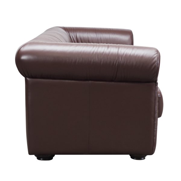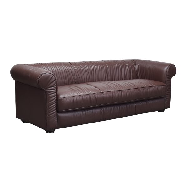 The Seattle sofa is a modern paired back expression of a chesterfield shaped sofa. Replacing the formal style of the chesterfield with the character of a ruched cover – the ripple like folds adding softness and depth to the form that embodies designer style, elegance and comfort. Sink in to the generously padded shape. Simple round timber legs allow the ample sofa to float. Finishing detail sets off the edges all round for a most professional and highly tailored finish. In leather or fabric this sofa will transform any space beautifully with sublime high-end comfort and style that will turn heads.