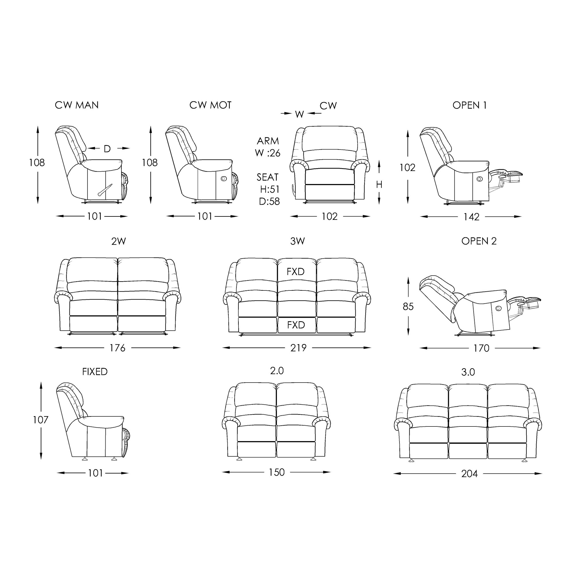This design is available with many operation options. Please ensure to always select your preferences at the time of placing your bespoke order to enhance your ultimate enjoyment. Select from manual, motorised and motorised with lift operations. Select your preferred recliner control method such as handle or trigger for manual control and dual button or hand remote for motorised control. Plus all recliner chair controls can also be tailored with left or right-handed placement for added personal convenience.