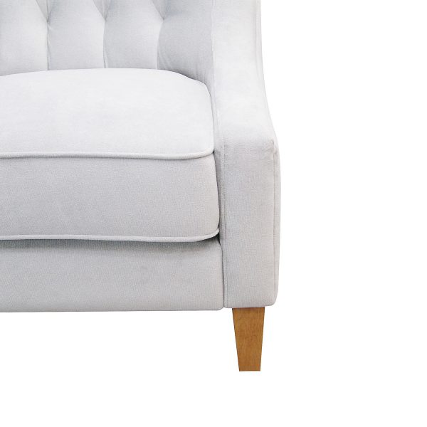 The Oscar chair with studs will add timeless elegance to your office/study/dressing table with an extra touch of glamour. The fully upholstered seat and back comes in textural natural-look fabric and hand-studding detail that complements the stylish curved high-back style. Featuring tufted buttoning on the backrest interior, this chair exudes warmth and sophistication with eye catching detailing with the shimmer of studs for brilliance. Elegant slim timber legs complete this classically beautiful look. The generously padded seat will support extended comfort. With well-balanced proportions and low arm frame these chairs will sits snug against a table for a neat ensemble.