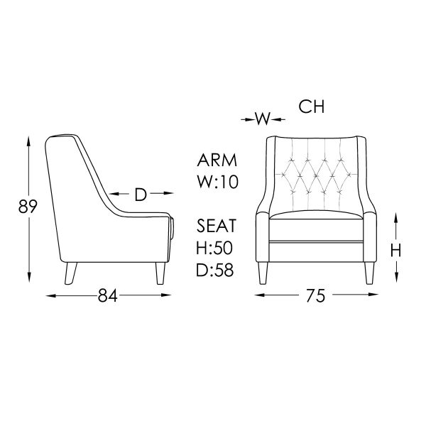 The Villa chair is a classic accent staple. This no-arm style features a high back revealing its elegantly diamond buttoned back. The gentle curves of this chair ensures it supports you in all the right places. With its fluid lines and feminine shape, is what makes the Villa a truly refined piece. Use this chair to compliment a range of sofa styles. Not only does this chair look exquisite but its compact shape makes it perfect in pairs. Its comfortable seat makes it an ideal occasional piece for this extra guests to sit in comfort. This finishing also allows this chair to match back easily in leather of fabric with many diamond buttoned sofas or bedhead styles for a high-end and seamless interior decorating style.